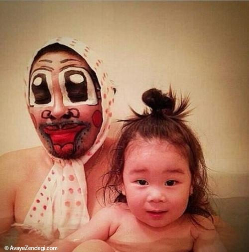 چه هیرو سوئت نام این پدر خلاق است که برای بردن کودکش به حمام دست به اقدامات جالب و عجیبی می زند. کودک او از حمام کردن فراری است ولی این پدر خوش سلیقه هر دفعه کودکش را بدون گریه و زاری به حمام می برد. او هر دفعه خودش را به شکل های عجیب و غریب گریم کرده و به بهانه آن سر دخترش را گرم کرده و او را به حمام می برد.