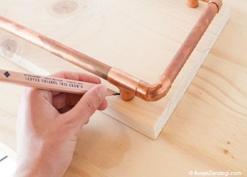 ۱۰. در فضایی كه دارای تهویه مناسب است لوله‌های مسی را رنگ كنید. فقط دقت كنید كه برای داشتن سطحی یكدست باید چند لایه رنگ روی سطوح اضافه كنید. در نهایت اجازه دهید لوله‌ها به طور كامل خشك شوند.
