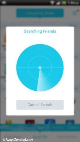 3. اکنون برای ارسال فایل باید بین نسخه اندرویدی و نسخه ویندوزی برنامه Zapya ارتباط برقرار شود. راههای مختلفی برای اتصال این دو نسخه وجود دارد که ما در اینجا آسانترین روش را خدمت عزیزان معرفی میکنیم. برای اینکار به اپلیکیشن Zapya در گوشی یا تبلت خود رفته و از قسمت بالا گرینه "Connect to Share" را انتخاب کنید.