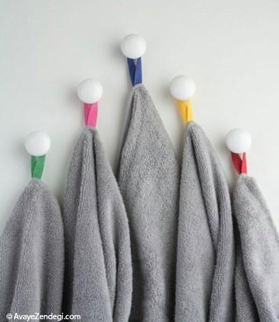 اگر حوله، لباس، لیوان یا لیف حمام اعضای خانواده شما به یک رنگ است طوری که مدام آنها را اشتباه می گیرید، می توانید از آویزهای رنگی برای تشخیص آنها استفاده کنید و هر رنگ را به یک نفر اختصاص دهید.