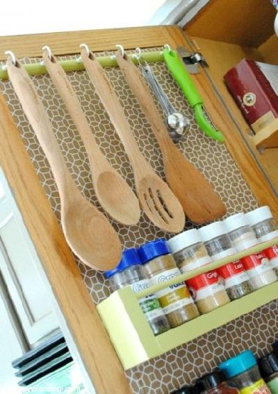 از قسمت داخلی درب کابینت هایتان برای سازماندهی، ادویه جات، ترشی ها و بعضی از ظروف می توانید استفاده کنید.