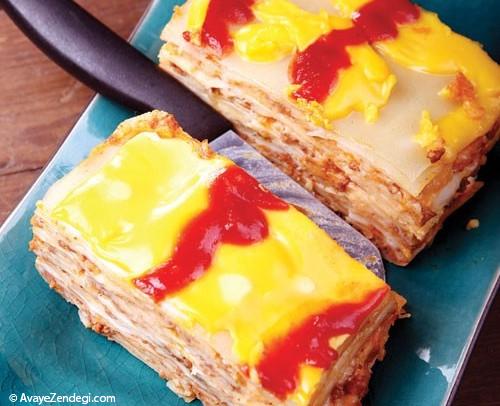 اگر طعم ترش را می پسندید، این لازانیا را فراموش نکنید. در تهیه این لازانیا از رب انار برای طعم دادن استفاده شده است.