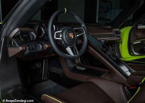 پورشه 918 Spyder مدل 2015 بسیار نایاب است؛ مخصوصا اگر به رنگ سبز مایل به زرد باشد. این پورشه بی‌نظیر دارای پیشرانه 8 سیلندر خورجینی 4.6 لیتر که 608 اسب‌بخار قدرت دارد و اگر به سیستم هیبریدی مجهز شود، قدرت تا 887 اسب‌بخار افزایش می‌یابد.