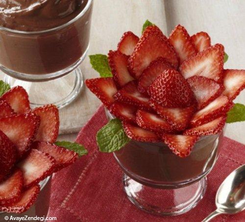 در زیر دو نمونه تزئین با توتفرنگی گل شده را میبینید.