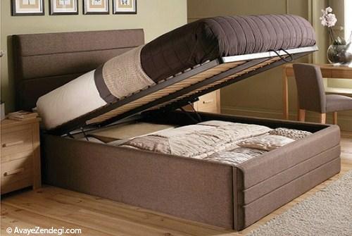 به این فكر كنید كه چه نوع تختی میخواهید. بعضی از تختها این قابلیت را دارند كه تشكهایشان بلند میشود و زیر آن یك انباری توكار دیگر غیر از كشوها وجود دارد. البته برای تختهای بزرگ (King Size) اینها انتخابهای فوقالعادهای است. در غیر این صورت اگر تختتان كشو هم ندارد باید سراغ جعبههای مسطح و كوتاهی بروید كه از هر فروشگاه جعبهسازی میتوانید خریداری و به راحتی آنها را زیر تخت پنهان كنید.