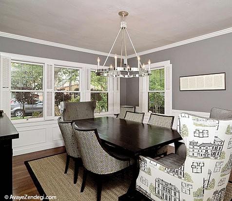 برای متفاوت كردن فضای غذاخوری لازم نیست همیشه به فكر استفاده از صندلیهای خاص در رنگها و طرحهای متفاوت باشید. میتوانید گاهی مبلها را هم بازی بدهید و وسط میدان بیاورید. تركیب كاناپههای راحتی و مبلهای نشیمن با رویههای خاص با صندلیهای غذاخوری هم خودش نمای متفاوتی ایجاد میكند.