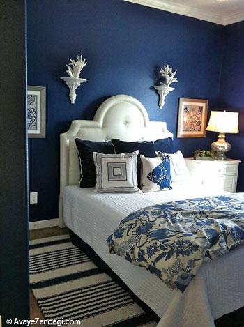 در اینجا رنگ الهام بخش مورد نظر، رنگ آبی می باشد. شما می توانید برای داشتن یک اتاق خواب دوست داشتنی از این رنگ استفاده کنید.