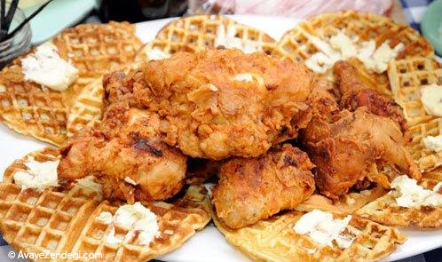 ترکیب مرغ و وافل به نظر غیرعادی می آید ولی بد نیست بدانید یکی از میان وعده های معروف در آمریکا است که اخیرا در کشورهای دیگر هم پیدا می شود. می توانید این ترکیب را با عسل یا سس بخورید.