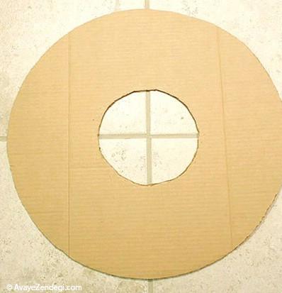 2- جعبه مقوایی خود را به صورت دایرهای اندازه دلخواه بزنید. (برش دایره بیرون و درونی )