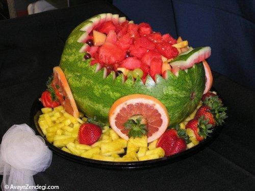 شما می توانید میوه ها را با توجه به اندازه و یا رنگ خود تزئین کنید، همچنین می توانید آنها را بر روی سیخ چوبی ضمیمه، یا حتی شما می توانید از خود میوه ها استفاده کنید. بهترین میوه برای ساخت اشکال خارج از آن است زیرا می توانید آن را با میوه های دیگر  نیز پر کنید. بنابراین اجازه دهید تخیل و خلاقیتتان به پرواز درآمده و در ایجاد برخی دکوراسیون های بسیار جذاب از میوه ها که هر کس را تحت تاثیر قرار می دهد، هنرنمایی کنند.