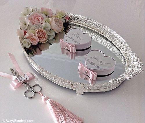 حلقه های عروسی در ظروف زیبای مخصوص زیباتر به نظر می رسد. با تزئینات منحصر به فرد، ظرف حلقه عروسی خود را به یاد ماندنی تر کنید. شما می توانید مراسم عروسی و یا جشن خود را با تزیین دکوراسیون جای حلقه جذاب تر کنید و از آن لذت ببرید. تزئین دکوراسیون بشقاب خاتم در کنار لباس عروس و داماد زیبایی آن ها را نیز تکمیل می کند. شما می توانید با تزئین ظرف حلقه ها، احساسات خود را نشان دهید و دیگران را تحت تاثیر قرار دهید.