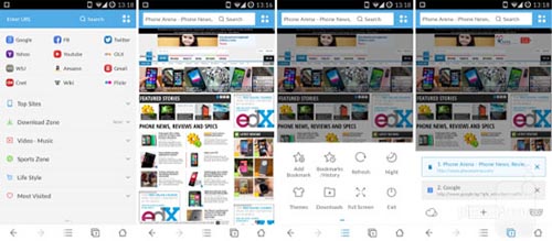 مرورگرهای CM Browser، Javelin، Next Browser و Lightning Browser نیز در لیست ۱۰ مرورگر برتر سال ۲۰۱۴ قرار گرفته اند اما از بررسی جداگانه‌ی آن‌ها در زمینه طراحی صرف نظر می‌کنیم. البته عکس‌هایی را از منوی کاربری Lightning Browser و Javelin آن‌ها در ادامه قرار داده‌ایم: