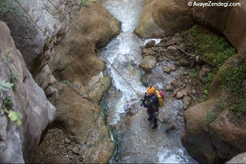 رسیدن به بالای آبشار و دو کوهی که شکافی عمیق بین خود دارند، برای ما که تخصصی در این راه نداشتیم، آنقدرها کار آسانی نیست اما دره نوردی از نقطه ای که به آن صعود کرده ایم، برای" تینا "آغاز می شود.