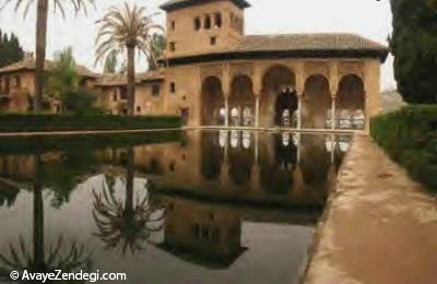 قصر الحمرا بالای تپه ای در جنوب شرقی گرانادا (غرناطه) ساخته شده است و یکی از شاهکارها معماری مسلمانان به شمار می رود.
