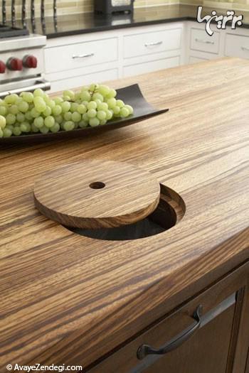 10. برخی طرح های ساده و کوچک می تواند تنوع خوبی در ظاهر کانتر ایجاد کند. به طور مثال، این سطل آشغال توکار ایده بسیار خوبی است.