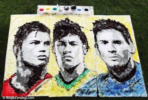 هنرمند چینی ساکن شانگهای رد هانگ وای نقشی از سه سوپر استار مشهور فوتبال جهان را نقاشی کرده است. او نقش کریستینو رونالدو ، نیمار و لیونل مسی را بر روی پرده ای سفید نقاشی کرده است. او برای نقاشی این سه فوتبالیست تنها از پا هایش استفاده کرده . او این کار را با استفاده از توپهای رنگی و هدایت آن با استفاده از پا هایش انجام داده است.