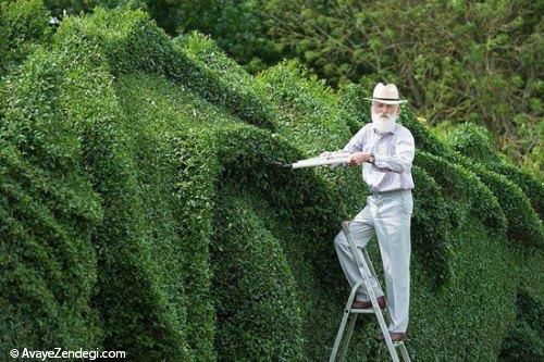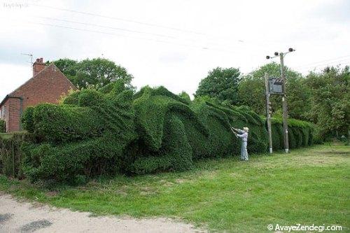 بعضی از مردم شاید از نگه داشتن گل و گیاه داخل گلدان و کنار پنجره خانه لذت ببرند و برخی هم از کوتاه کردن چمن های خانه خود ولی John Brooker باغبانی است که 10 سال از زندگی خود را صرف نگه داری و ساخت مجسمه ای گیاهیی از پرچین باغش کرده است.